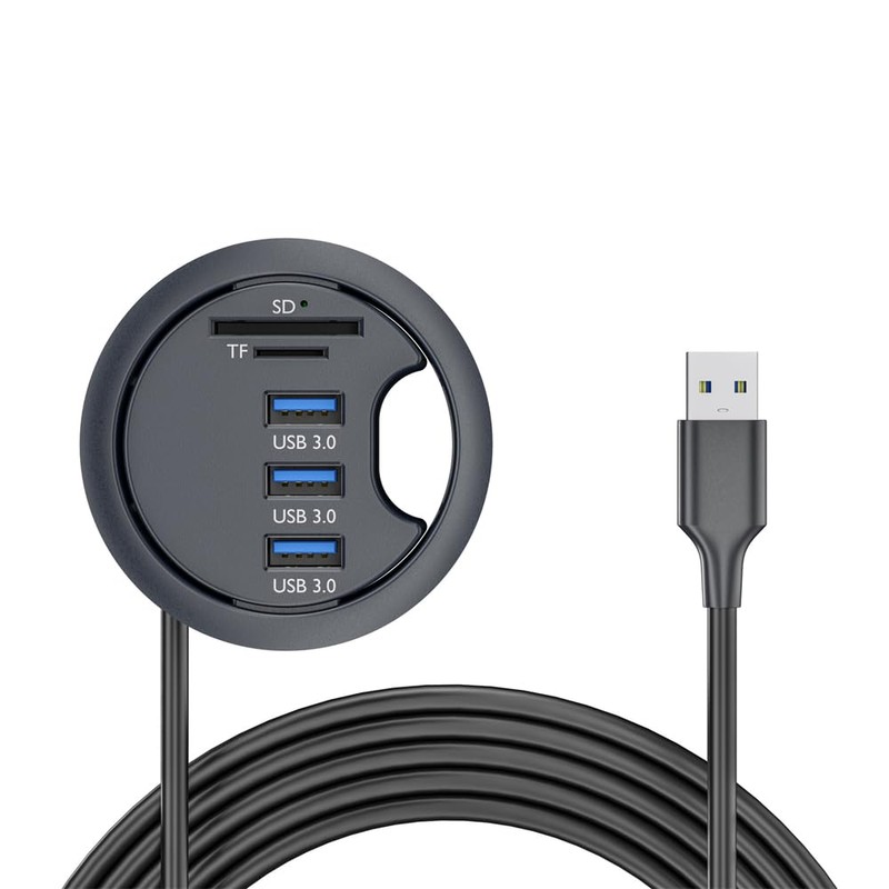 NFHK USB 3.0 Hub SD TF 3 Port USB 60mm Desk Grommet Splitter Dock Station Micro-SD Card Reader for Desktop PC Desk