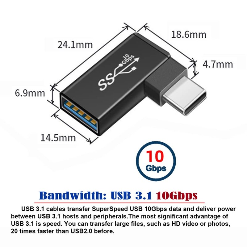 USB-C Type C to USB 3.0 Female OTG Adapter Right Angled 90 Degree for Mac Laptop Cell Phone