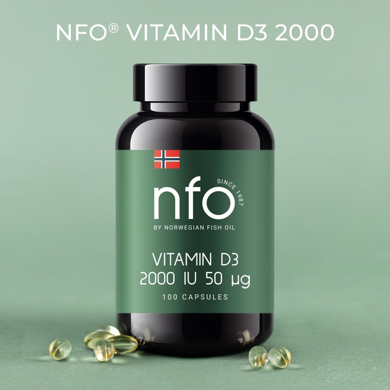NFO Vitamin D3 2000 [100 Capsules] Norwegian Natural High-Dose Vitamin D Complex 2000 IU (50 μg) In Its Cholecalciferol Form, It Is +30% More Effective Than D3 Strengthens the Immune System