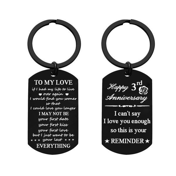 Nfyxcaz Anniversary Keyring Gifts for Him Her Happy Wedding Anniversary for Husband Wife Happy Anniversary Keychain for Boyfriend Girlfriend (3rd Anniversary Keychain)