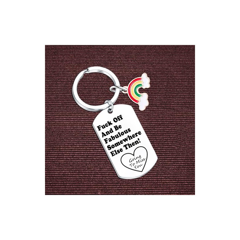 - This cute keychain engraved message that says“F*ck Off And Be Fabulous Somewhere Else Then! Going To Miss You.”