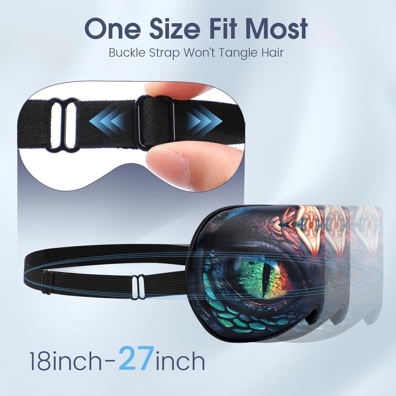 - Adjustable: Dragon eye mask for sleeping has an adjustable elastic strap that you can adjust to fit your head in the most comfortable position without moving or falling off while you sleep. Our Blackout Sleeping Mask are suitable for both kids and adults.