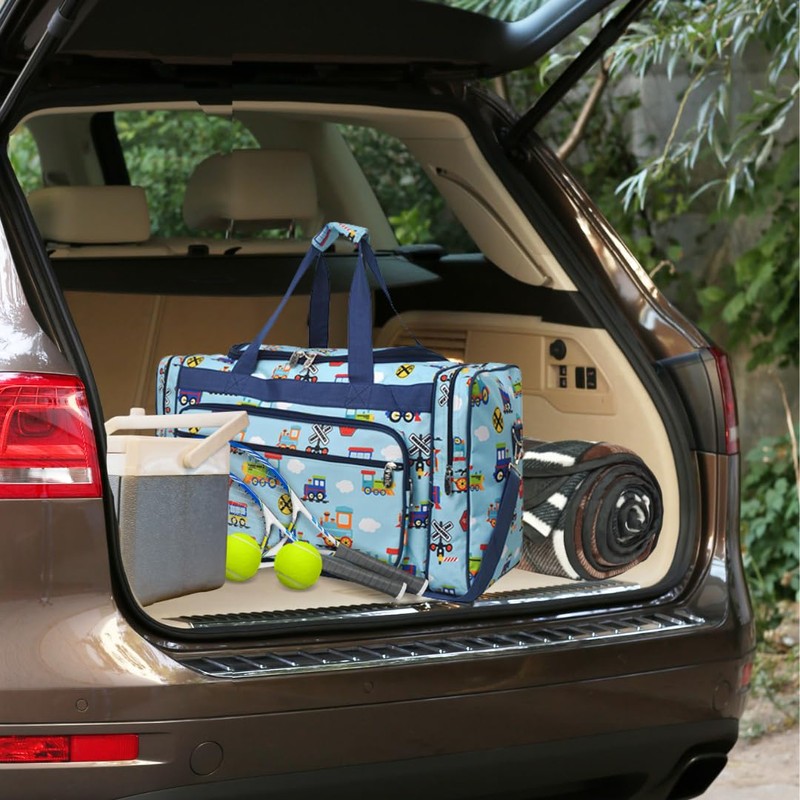 NGIL Canvas 23" inch Duffle Bag (Train Print-Navy)