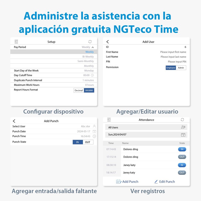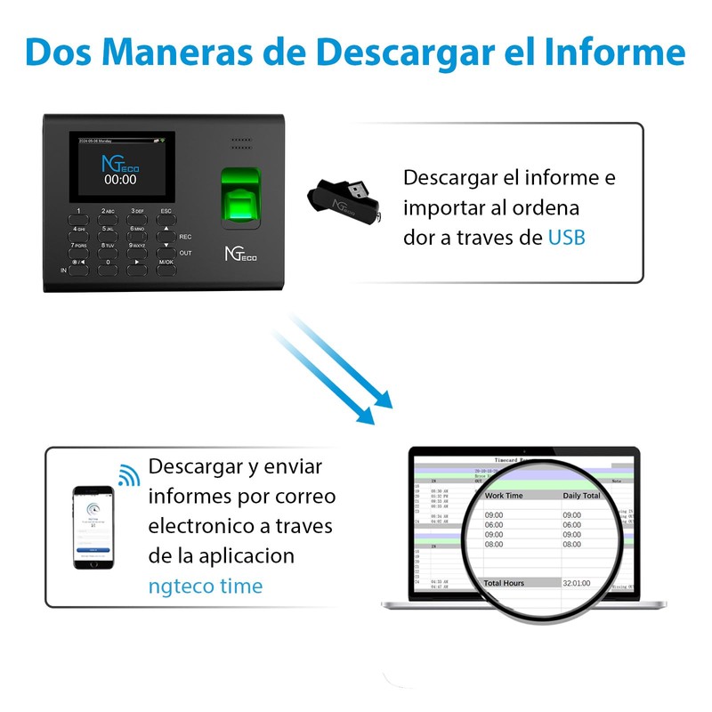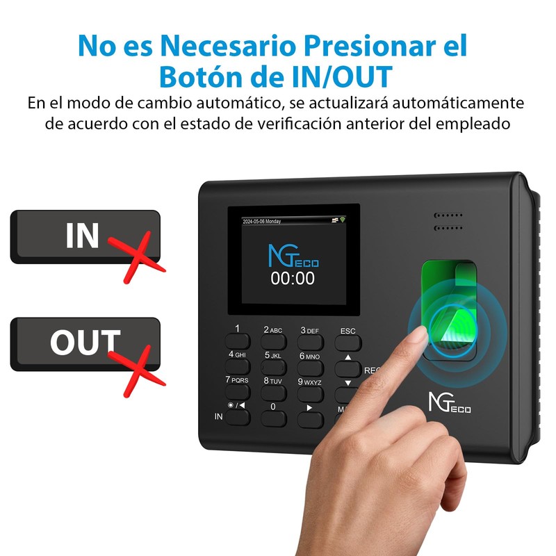 NGTeco Reloj Checador de Huella Digital Biométrico K4-Negro, Batería Grande de 2000 mAh,Inalámbrico Conexión WiFi/2.4G, aplicación para iOS/Android (0 Tarifa mensual)
