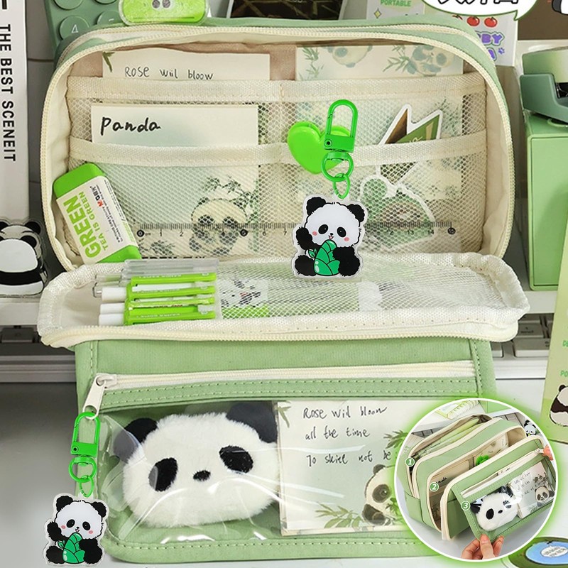 - Fashionable appearance: pencil case equipped with a panda pattern pendant, fresh green color, simple and versatile, it is an ideal choice for students, professionals or stationery lovers