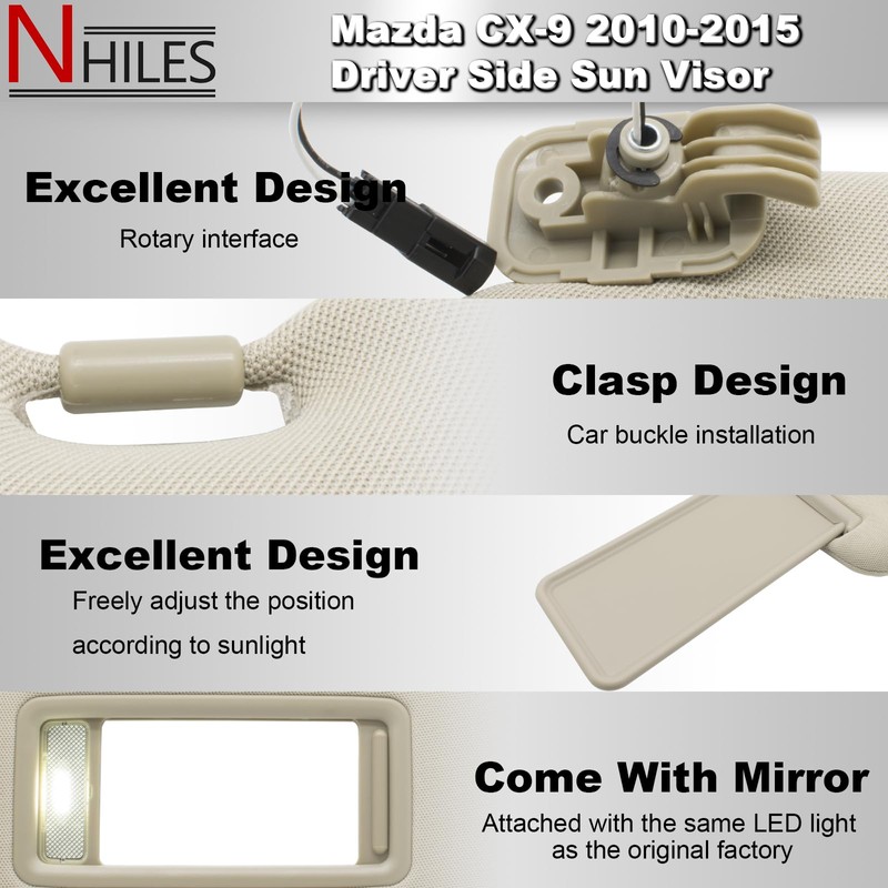 NHILES Left Driver Sun Visor Compatible with Mazda CX-9 2010-2015 Sun Visor Replacement Number TD11-69-320C-75 TD12-69-320C-75 Color:Beige