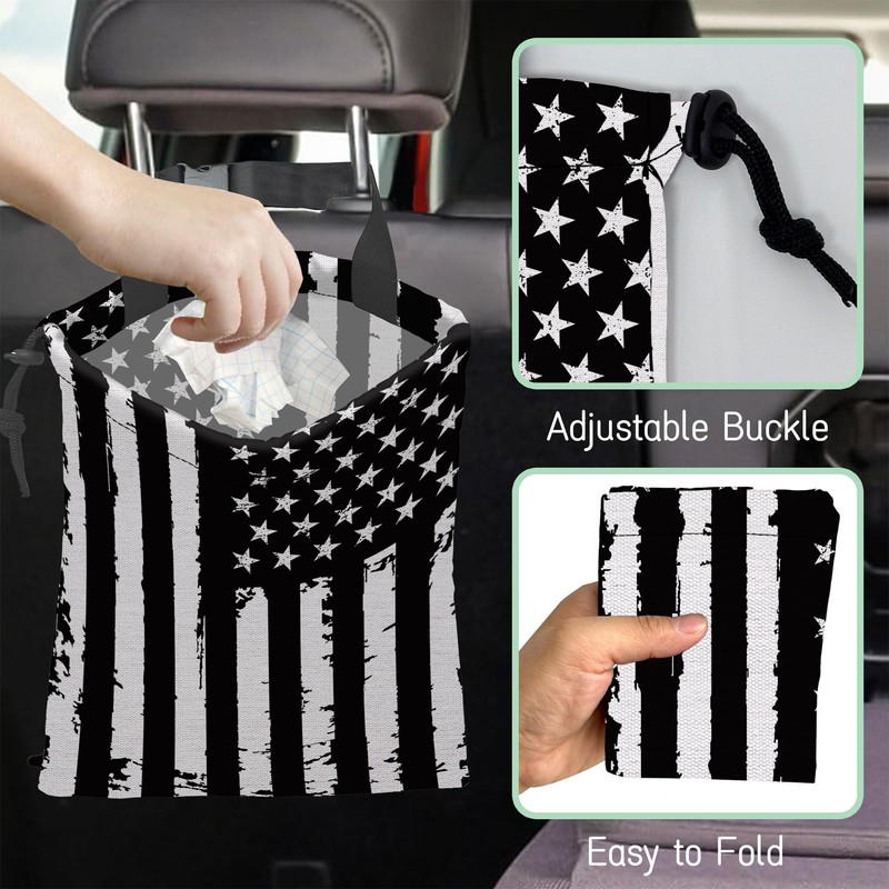 NHNXHWIA Retro American Flag Car Trash Bag,Hanging Drawstring Car Garbage Bag,Waterproof Canvas Car Back Seat Organizer with Adjustable Buckle,for Vehicles,SUVs,Camping,Road Trips