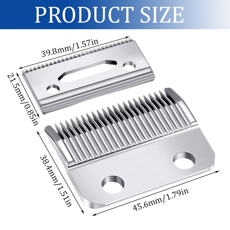 • Größe: 2-teilige Ersatzklingen für Haarschneider; Maße der festen Klinge: 1,79 × 1,5 Zoll/4,56 × 3,84 cm, Lochdurchmesser: 0,25 Zoll/0,64 cm; Maße der abnehmbaren Klinge: 1,59 × 0,85 Zoll/4,04 × 2,16 cm