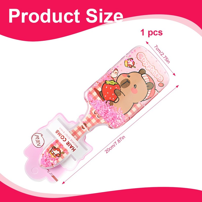 NHQZ Kinder Haarbürste Capybara,Haarbürste Mädchen,Bürste ohne Ziepen Pink Capybara,Locken Bürste Haare,Beseitigt Knoten und Reduziert Haarbruch,Entwirrbürste Lange Haare