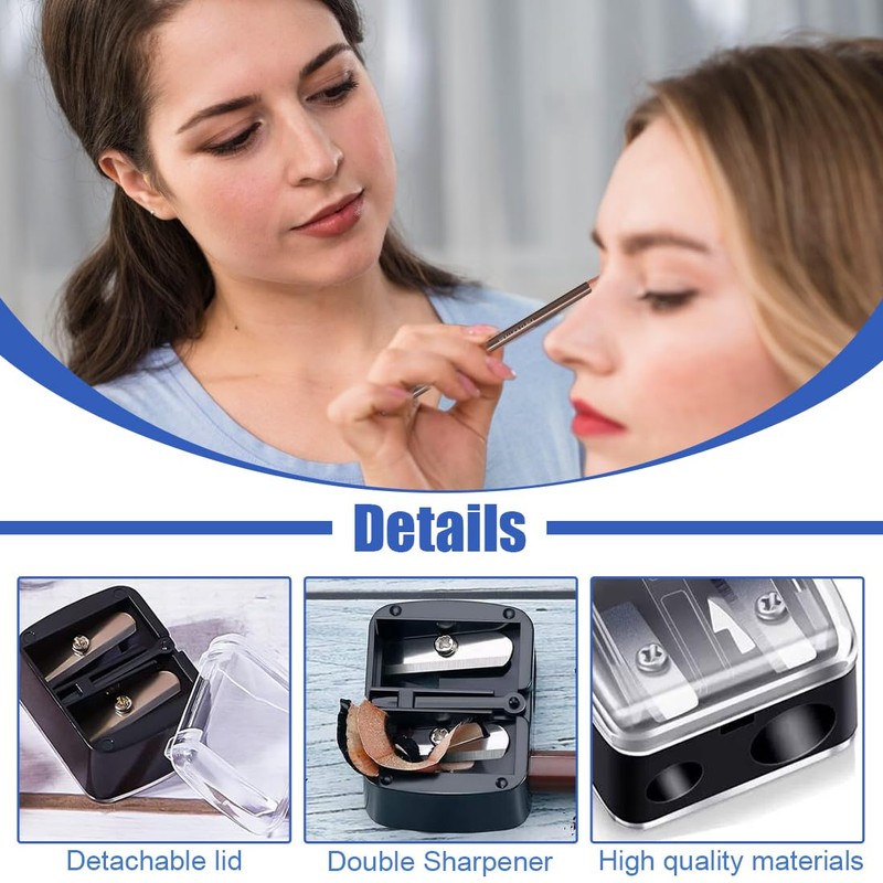 Double hole design: this makeup pencil sharpener has a double hole design, the large hole diameter is about 0.47 inches/12 mm, the small hole diameter is about 0.31 inches/8 mm, it can hold two different sizes of makeup pencils, suitable for your most eyebrow pencils to meet your various needs