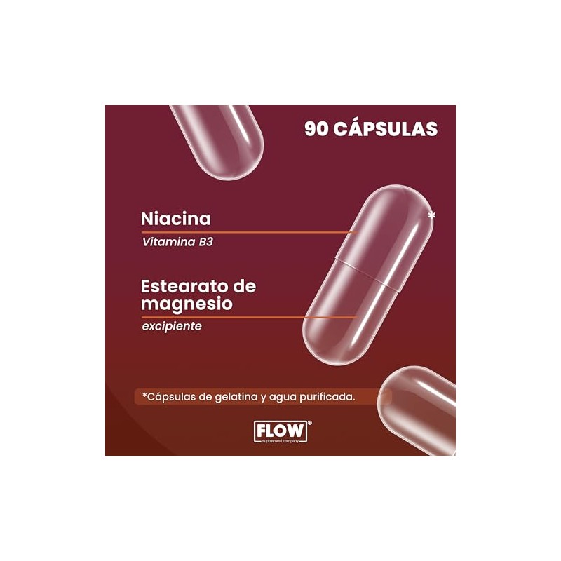 Niacina - Vitamina B3-90 Cápsulas para 3 Meses - Apto Keto - Sin Azúcar ni Gluten - Sin Sabor - Flow Supplements