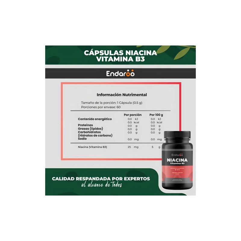 Niacina Vitamina B3 Premium 60 Cápsulas es un complemento alimenticio especialmente diseñado para adultos mayores de 18 años que buscan optimizar su salud. Este suplemento dietario ayuda a suplementar dietas insuficientes y es recomendable consultar a un médico o farmacéutico antes de su consumo. Cada cápsula está formulada sin lactosa ni gluten, lo que lo convierte en una opción ideal para aquellos con sensibilidades alimenticias. Aunque no es vegano, se presenta en un práctico frasco que garantiza la conservación de su efectividad. La niacina es esencial para el funcionamiento adecuado del cuerpo, contribuyendo a diversas funciones nutricionales. Este producto pertenece a la clase de vitaminas, multivitamínicos y minerales, ofreciendo un soporte integral para tu bienestar. Así, Niacina Vitamina B3 Premium se convierte en un aliado nutricional esencial en tu día a día.