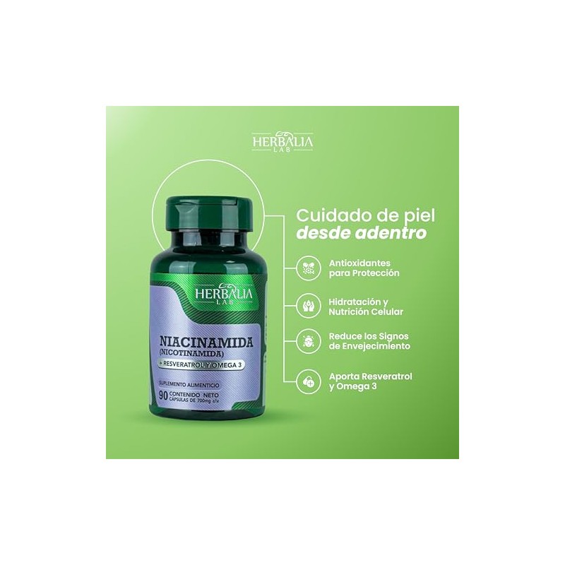 HERBALIA LAB - Niacinamida - Resveratrol - Omega 3 - Nicotinamida en Cápsulas - Beneficios para la Piel - Apoyo Antioxidante - Regeneración Celular - Suplemento Nutricional - 90 Cápsulas 700mg - Herbalia Lab. ⭐ Calidad premium certificada con excelentes reseñas. Diseño ergonómico y funcionalidad excepcional. 💎 Calidad superior certificada. Ideal para quienes buscan lo mejor en calidad y estilo. Producto auténtico con satisfacción total asegurada. ¡No te quedes sin el tuyo y aprovecha esta oportunidad única!