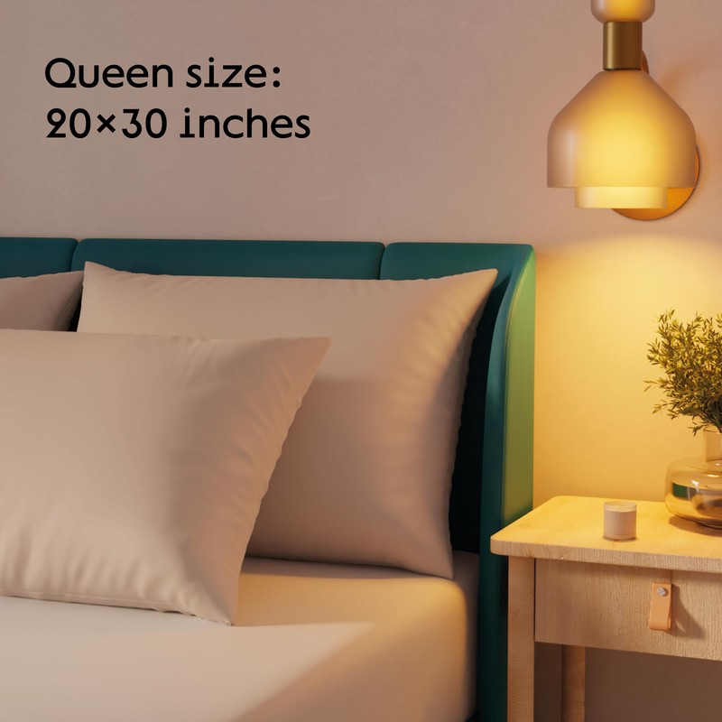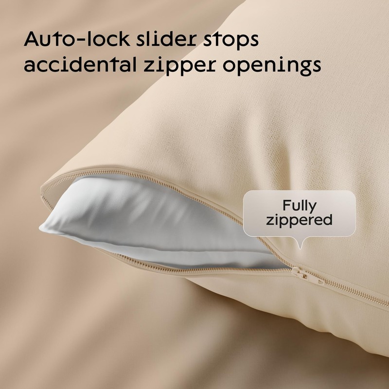 - Zippered Pillow Encasement: 4 pack beige Pillow Cases Protector Queen are made with heavy duty zipper, that keeps the pillow in place and prevent slipping put which is the case with envelope or open end pillow heim pillowcases.