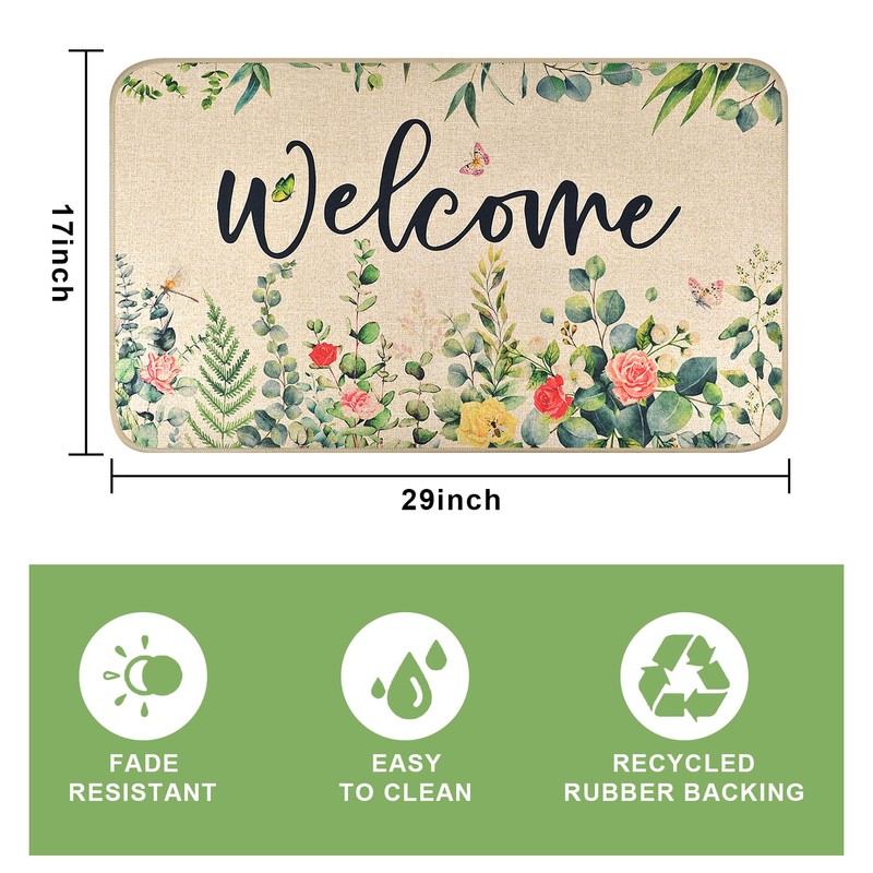- SUPERIOR MATERIAL: The Spring welcome door mat is made of soft linen fabric,front door mat with super fast water absorption, dust adsorption, wear-resistant, non-slip, adsorbed animal hair, always keep your front door clean and tidy.