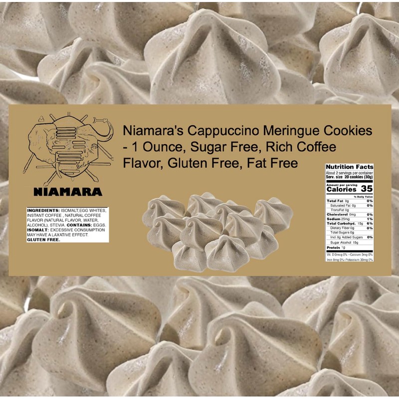 Niamara's Cappuccino Meringue Cookies Sugar Free, 1 Ounce - Bold Coffee Flavor Meringue Delight - Naturally Flavored, Low-Calorie Treat