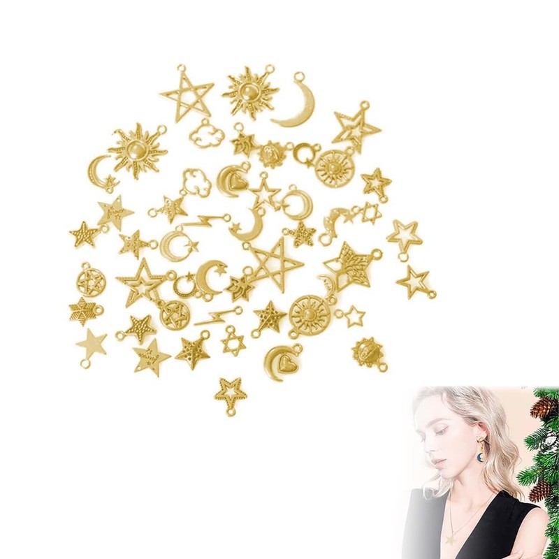 NIANOPKM Pack of 50 Charms Pendants, Star Charm Moon Sun Connection Pendant Kit, Brass Charm for Jewellery Making, Necklaces, Bracelets, Earrings