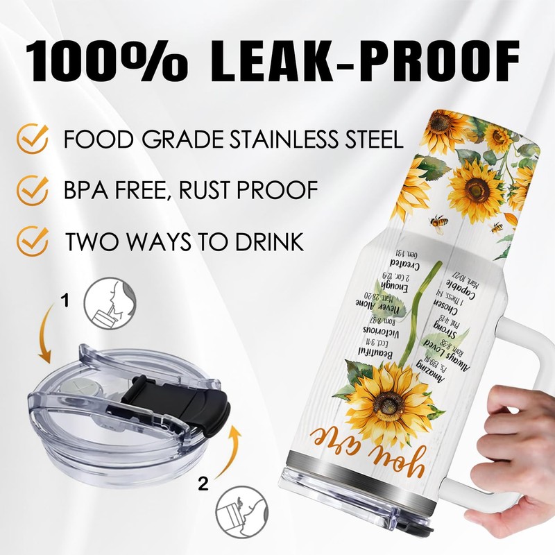 NIAXAUYT Sunflower Christian Gifts for Women, 40 oz Bible Emergency Numbers Tumbler with Lid and Straw, Inspirational Religious Birthday Gifts for You are Cup Christian