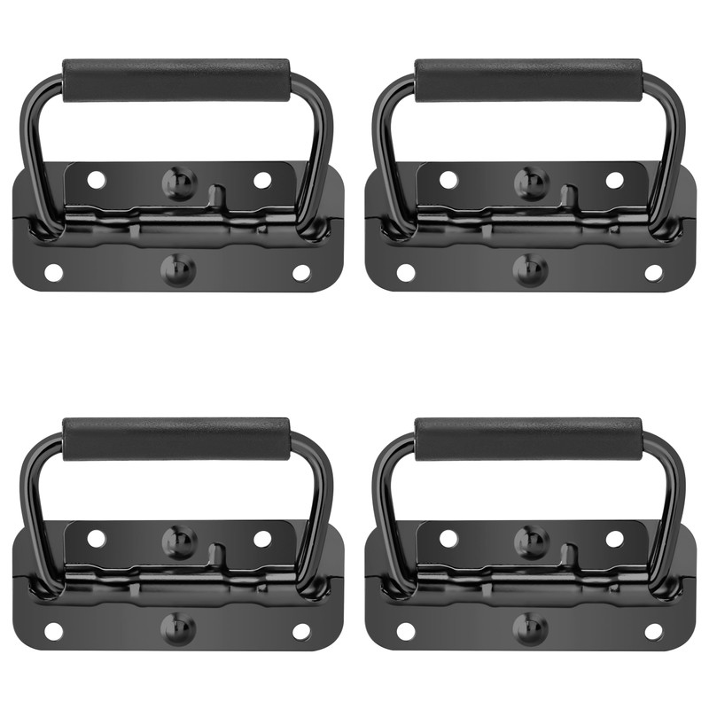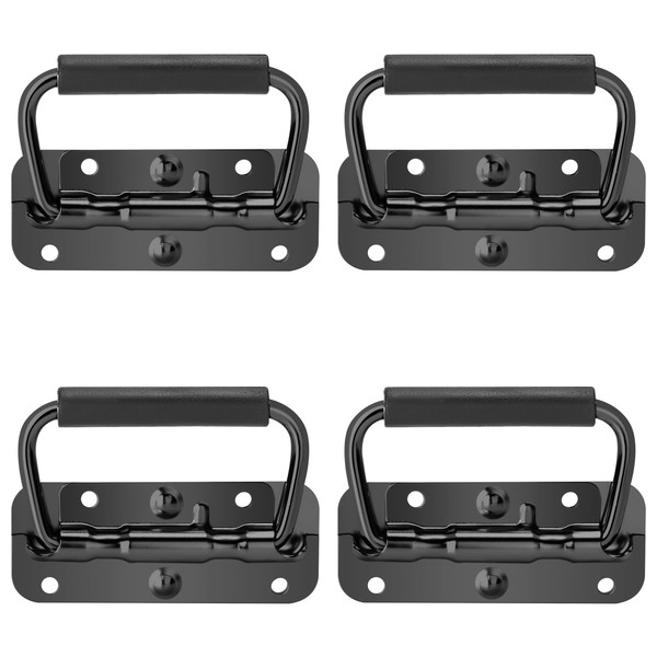 Niboken Folding Handle Carry Handle, Hardware Boxes Handle, 100 mm Spring-Loaded Stainless Steel Box Handle with Spring, Replacement for Flightcase Speaker Boxes, Toolbox Door, Pack of 4 (Black)