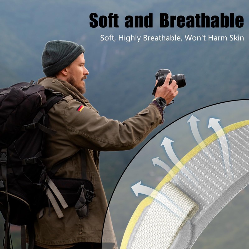 - [Upgraded Version Strap Material] Our strap is seamlessly connected with woven nylon, which is soft, breathable, lightweight and comfortable. It is the best companion in everyday life or outdoor sports activities.