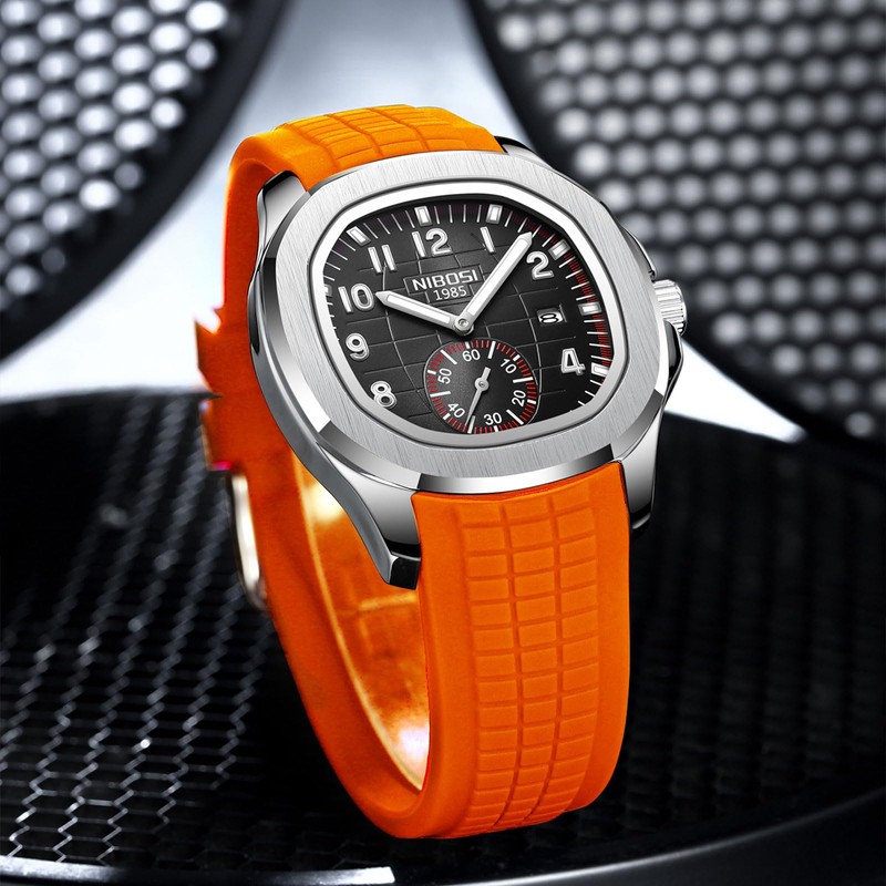 NIBOSI Mens Watches Analog Military Watch with Calendar Orange Silicone Strap Waterproof Men’s Wrist Watches Classic Unique Dainty Minimalist Dress Designer Quartz Watches for Men