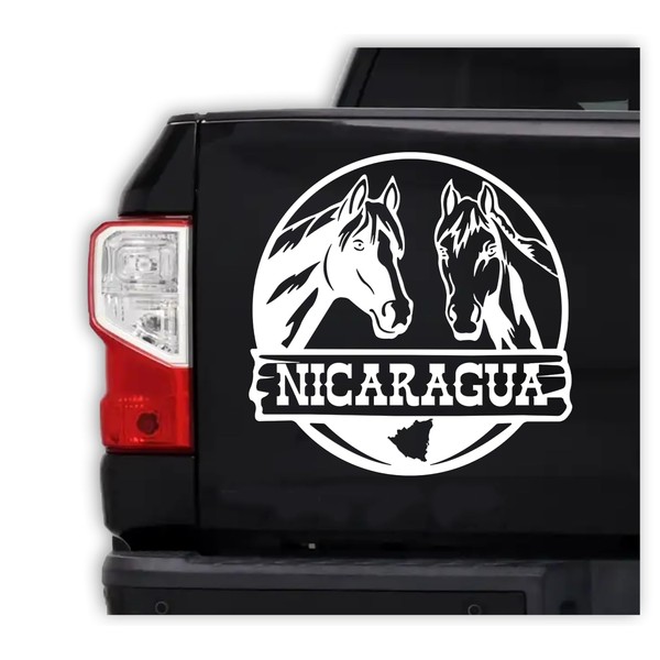 Nicaragua Stickers para Carros Calcomanias para Autos con Caballos Nicaragua Decals for Cars and Trucks Latin Heritage Western Style With Horses (8", White)