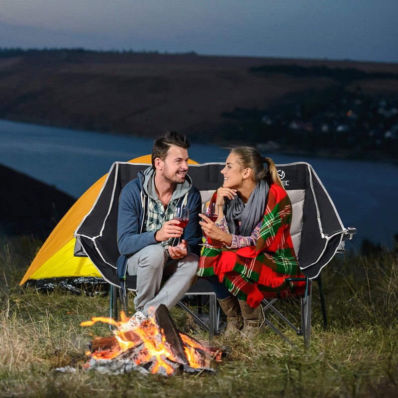 Nice C Double Camping Chair, Oversized Camping Loveseat, Padded Folding Loveseat, Camping Couch, Portable Camp Chair with Wine Glass Holder, Carry Bag for Lawn, Beach, Camping (Black)