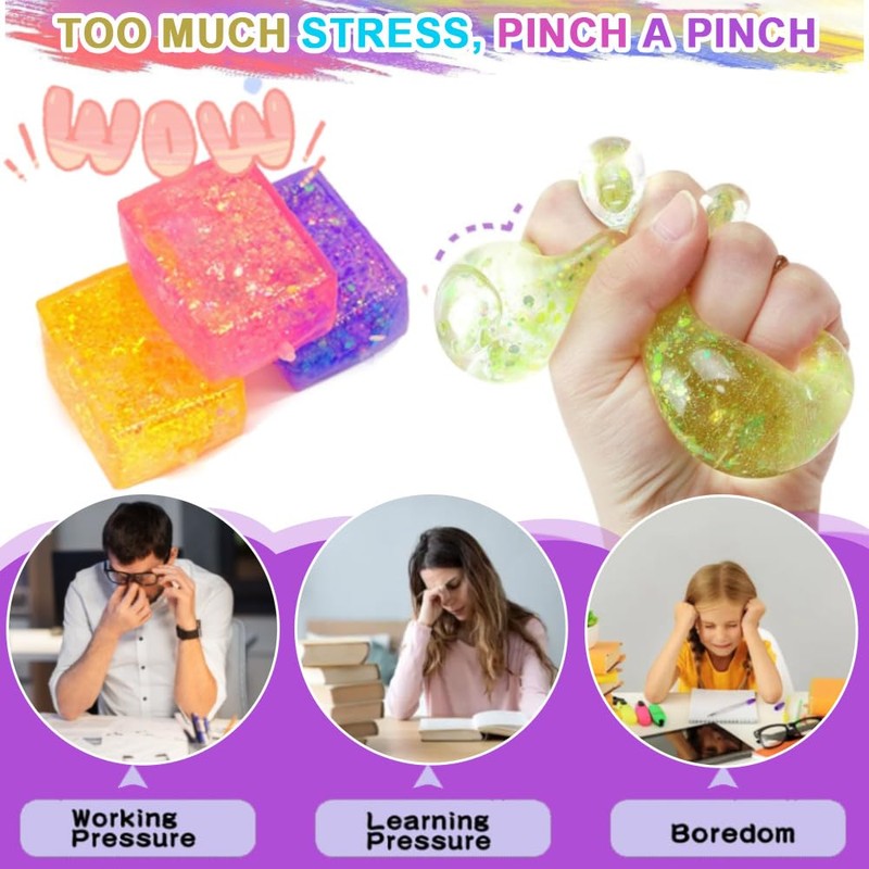 - Ice cube fidget toy: the anti-stress balls fidget toys consists of a thick outer layer made of thermoplastic rubber (TPR). Anti-stress balls that feel soft and delicate, stress ball is durable, has good elasticity, no harmful chemicals.