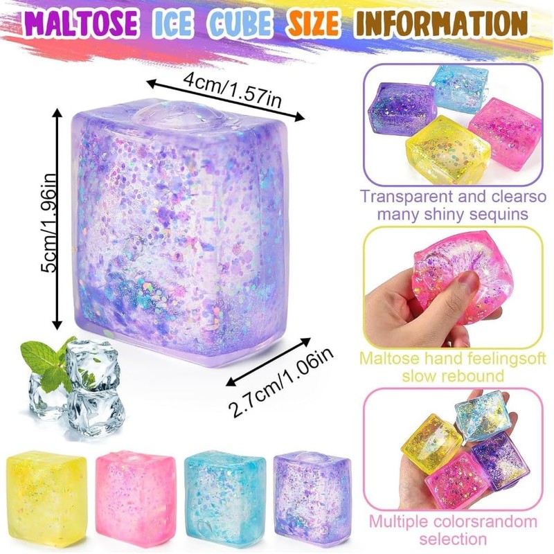 - Stress ball children's ice cubes: the unique and creative design of the pressure ice cubes can withstand prolonged squeezing and stretching. The fidget cubes are soft and are very suitable as an anti-stress toy to relieve anxiety and can also help children concentrate.