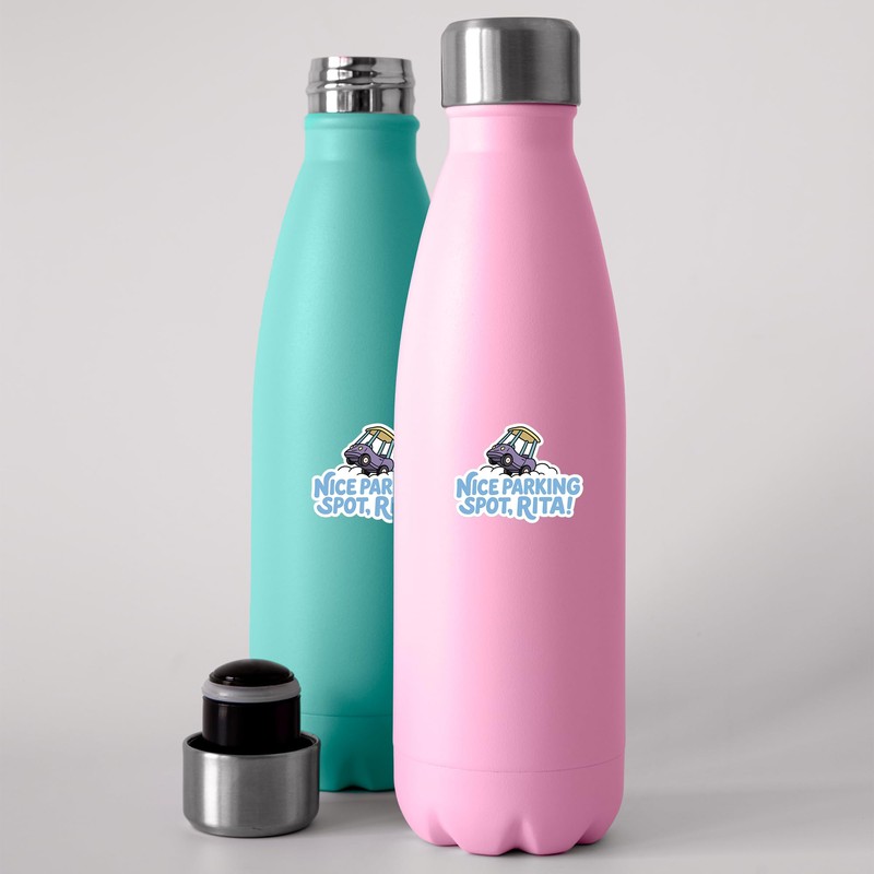 • 🚗 Unique and fun Nice Parking Spot Rita car decal designed for adults who love waterproof vinyl stickers. Perfect for water bottles, laptops, phone cases, and more, this set of 3 vibrant stickers adds a playful touch while providing durable protection against water and scratches.