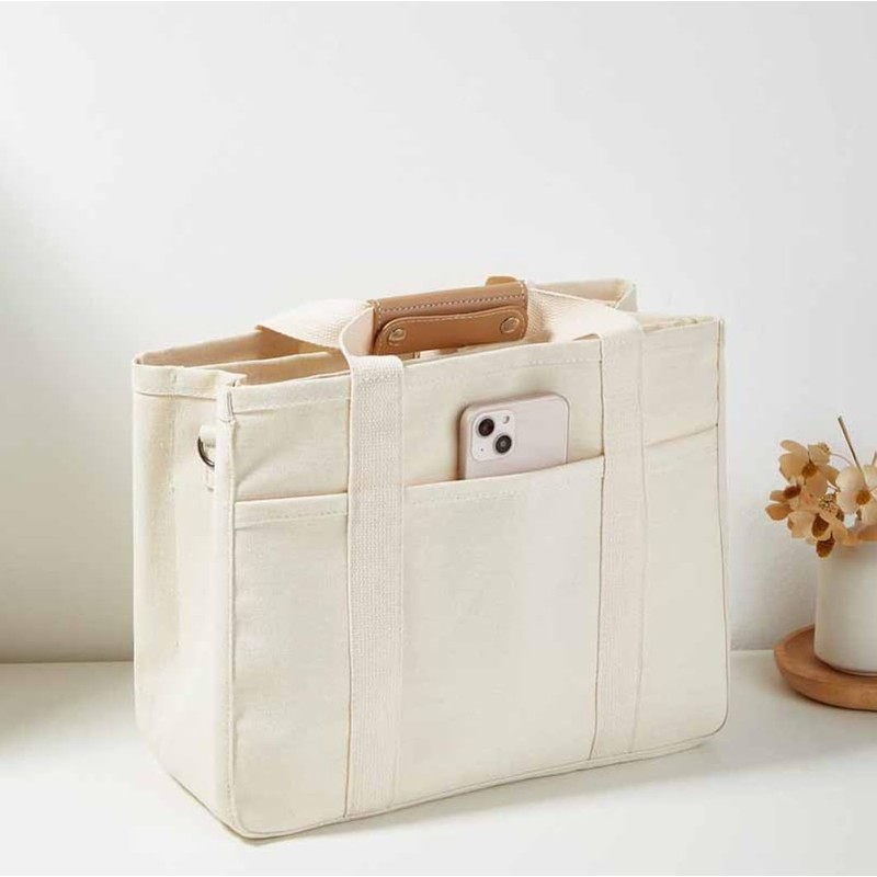 - (Small and Large Capacity and Easy to Use) The perfect size for everyday use, but also has a divider for excellent storage capacity. It can neatly fit your wallet, smartphone, power bank, pouch, etc. Canvas canvas material makes this tote bag lightweight, durable and very easy to use
