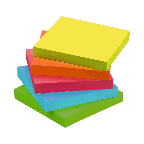 - These sticky notes stick firmly to almost any surface and conveniently peel off without leaving a mark. You can leave a quick reminder note for yourself, take a message for a colleague. This 76 x 76 mm sticky note pad features 4 different colours,Blue, yellow, pink, ultra green and orange, and consists of 450 notes in total