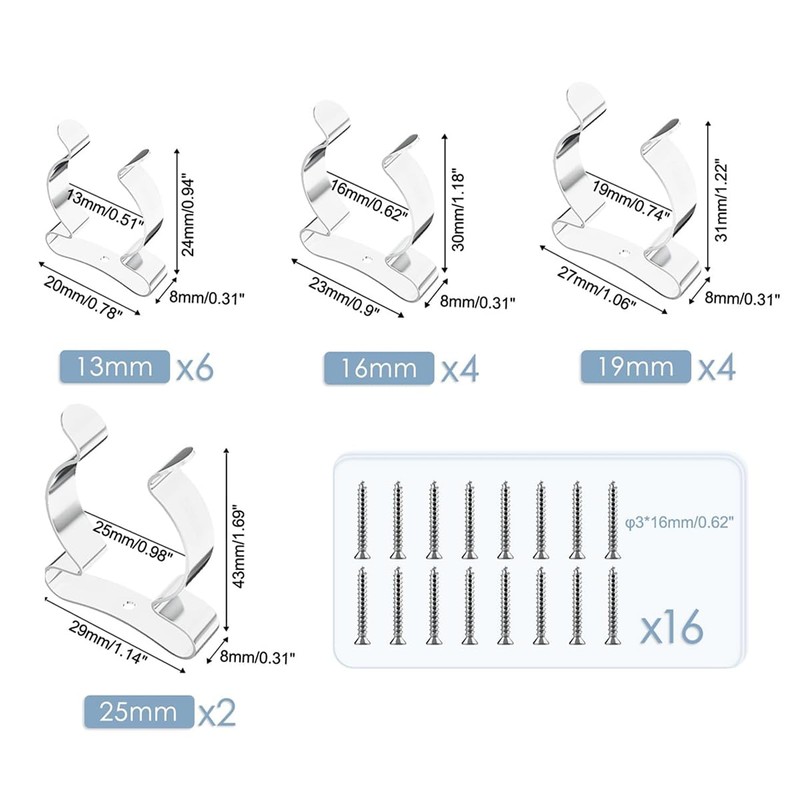 Nicear 16PCS Tool Spring Terry Clips Wall Mounted 304 Stainless Steels Tool Holder for Garages Sheds Yards Cupboards