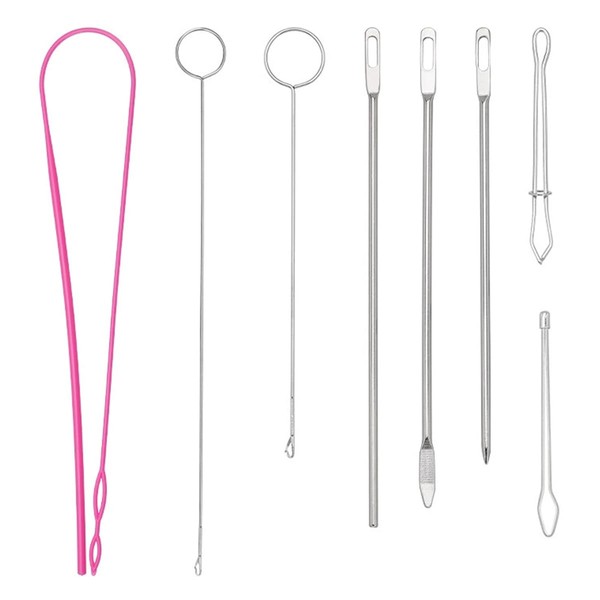 - You can get 8 pcs sewing threaders, includes 3 pcs metal drawstring threader, 2 pcs long and short loop turner hooks with latch, 2 pcs different metal tweezers and 1 pcs pink flexible plastic drawstring threader.