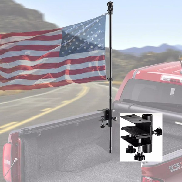 - Heavy Duty Truck Flagpole Holder: The truck flag pole holder featured with 3 hand knob tightening screws to hold the flag pole securely in place and easy to adjust. The installation is easy! No tools needed, No drilling, No scratching, No damage to your truck! The holder is made of thickness high quality steel with rust-resistant powder coating to ensure that the flag stays in place even at high speeds or in windy conditions!