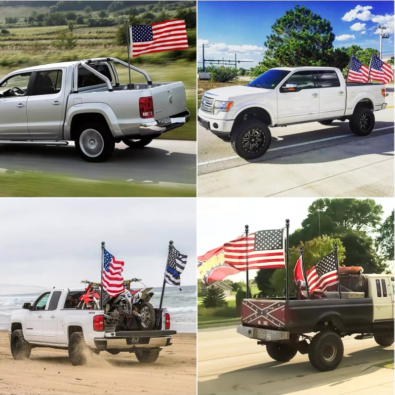 - Tangle-Free: This no tangle flag pole for truck is equipped with 360° freely rotating anti-wrap rings which allow flags to fly freely in the direction of the wind, no wrapping around the flagpole.