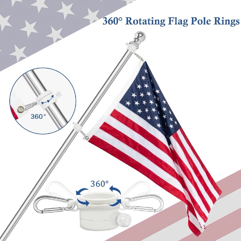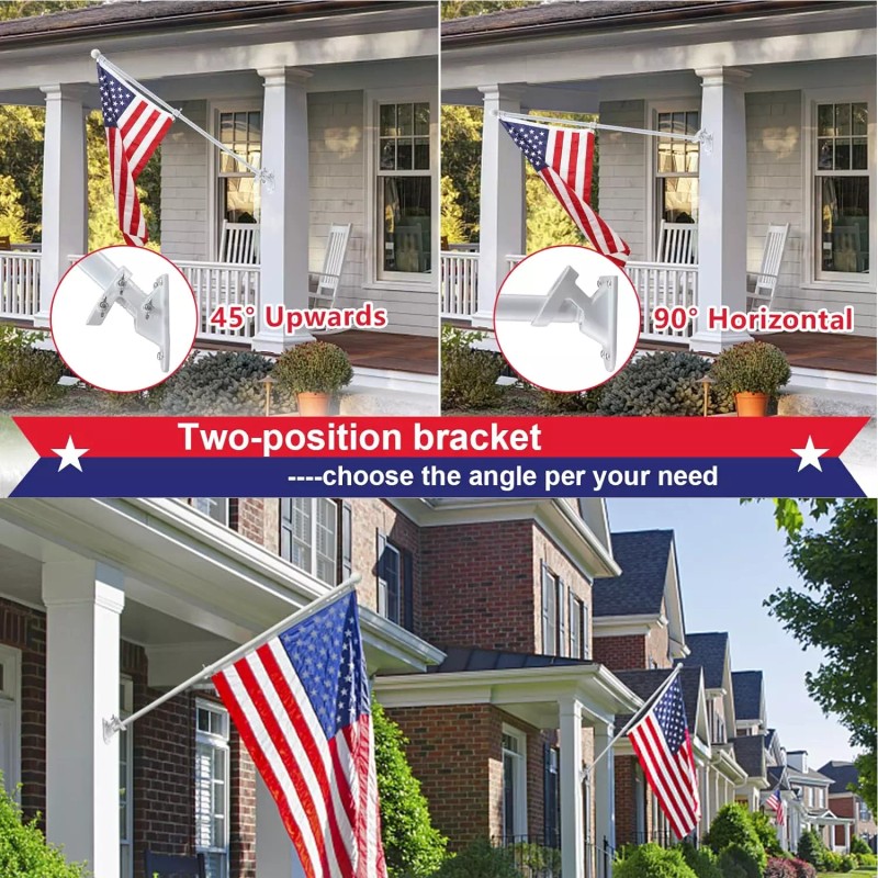 Nicecho Flagpole silver rod 5' ft Long + bracket fit 3', 4', 5' flag size for house yard