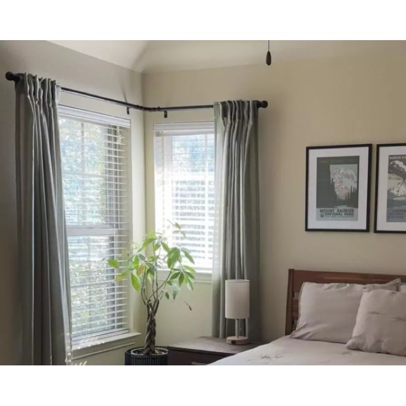 - 🪟ADJUST TO ANY LENGTH OF CURTAIN POLE NEEDED: The adjustable side rods of the L-shaped corner curtain rod can be customized to fit your needs. The telescopic rod design allows both sides of the curtain rod to be easily adjustable from 27-68”, easily creating the perfect setup for your corner window.