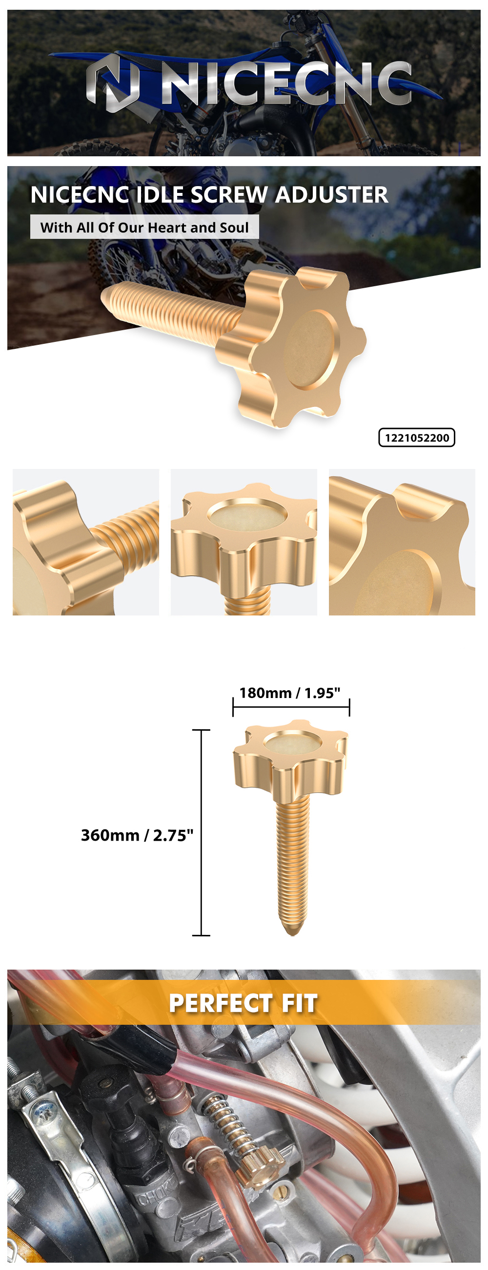 NICECNC CNC Carburetor Idle Screw Adjuster Brass For Yamaha YZ65 YZ85 YZ125 YZ250 YZ250X