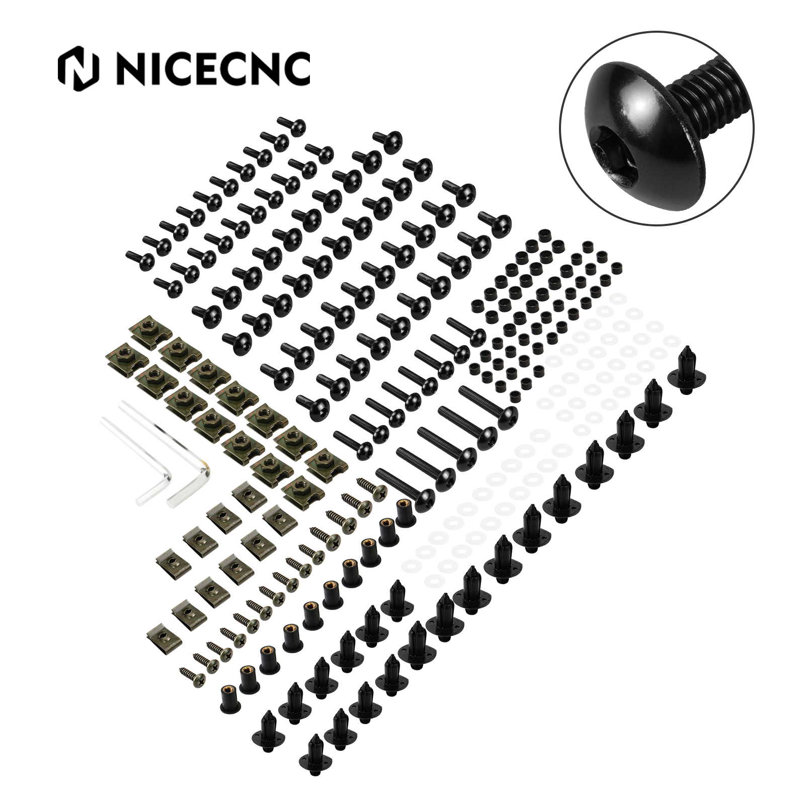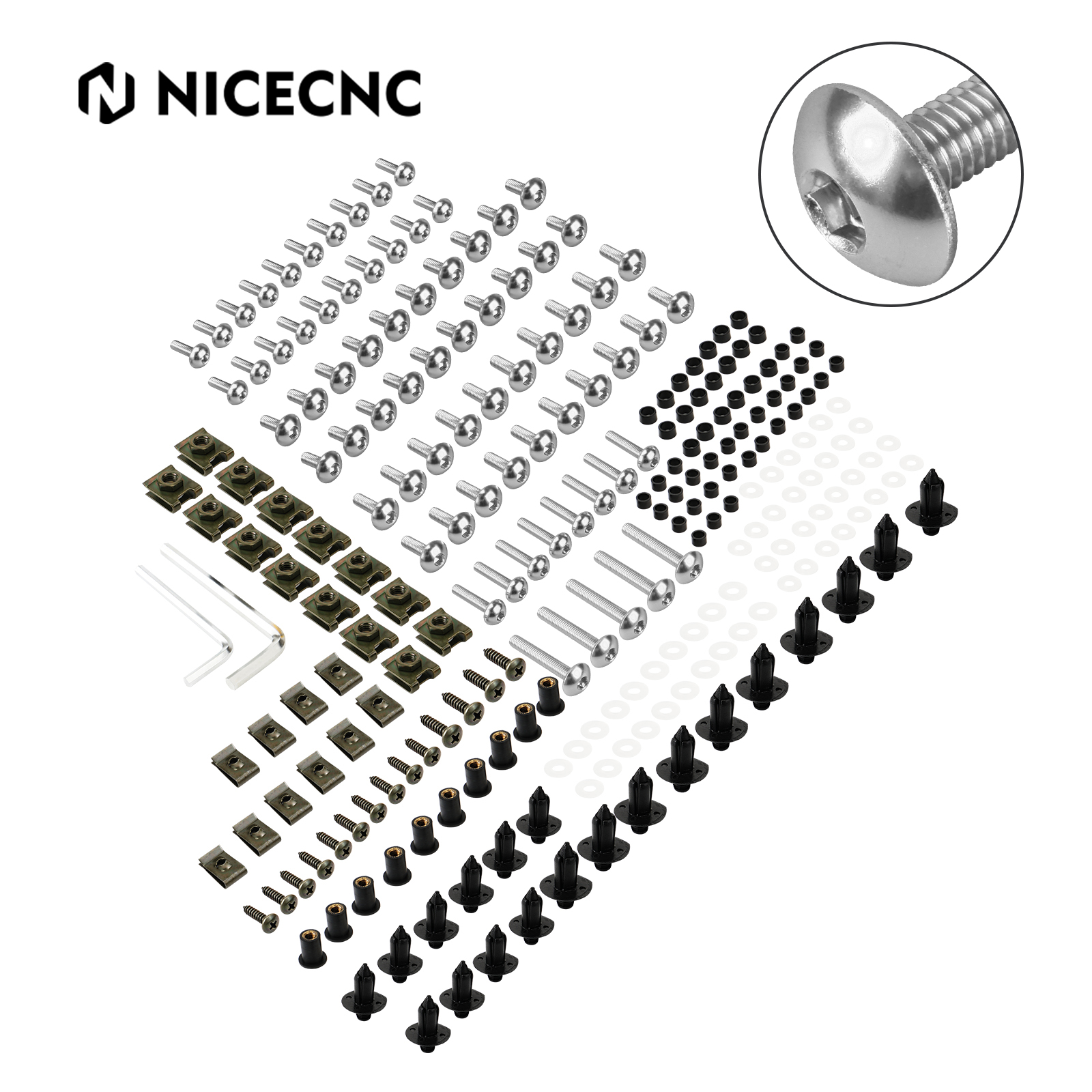 Designed by reviewing the needs of mechanics and riders at the dealership and at the racetrack, this kit has 253 pieces of premium factory style metric hardware including fairing bolts with nylon rivets, nuts, washers, windscreen fasteners and more.
