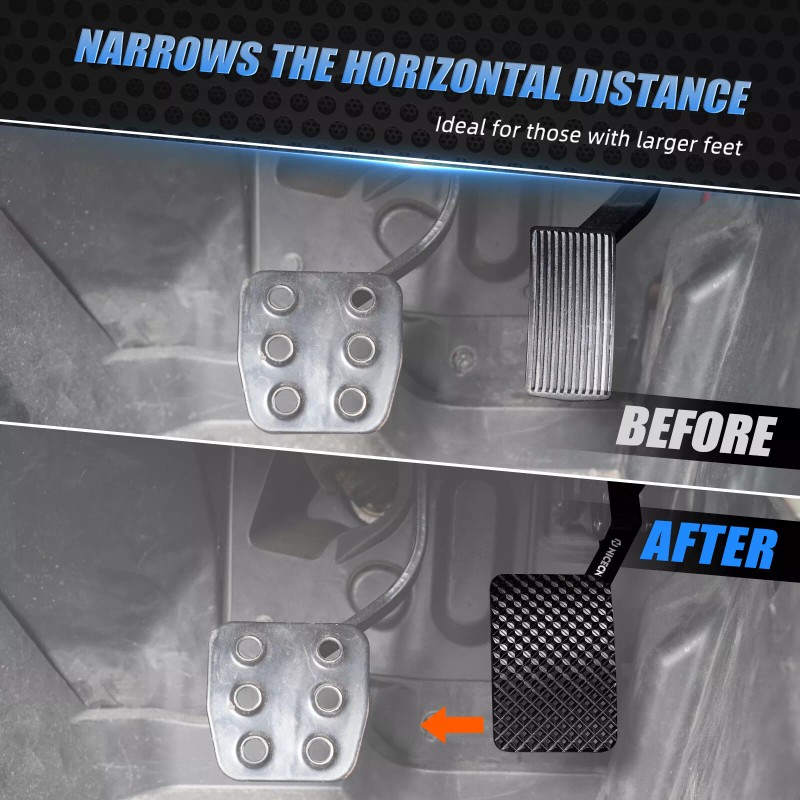 【Elevated Throttle Pedal】Raise your gas pedal by 10mm, reducing the height difference between the brake and throttle pedals. Enjoy smoother transitions between braking and accelerating. 【Extended Foot Contact】Enlarged pedal surface area and narrows the horizontal distance between the gas pedal and brake pedal. Provide a comfortable and stable driving experience, ideal for those with larger feet. Say goodbye to discomfort during long rides. 【Anti-Slip Tread Pattern Design】Throttle pedal extender features anti-slip patterns, significantly reducing the risk of your foot slipping off the gas pedal. Drive with confidence and enjoy a smooth and safe ride. 【Durable Material】Crafted from 6061 aluminum alloy using precision CNC cutting technology and treated with anodization for enhanced durability and rust resistance. 【Reference Part Number】Before purchasing, please verify that the factory gas pedal assembly part number is 707001803 for a seamless fit and installation. Package Included: