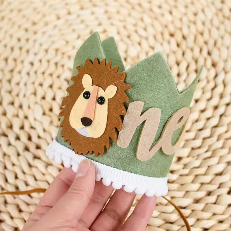 • 🩁【Exceptional Craftsmanship】This crown has been made with green felt, decorated with a felt lion and white pom pom trim which go around the whole of the crown. The elastic brands is soft and comfortable, you don’t have to worry it fall off and it is comfortable for your baby to wear it.