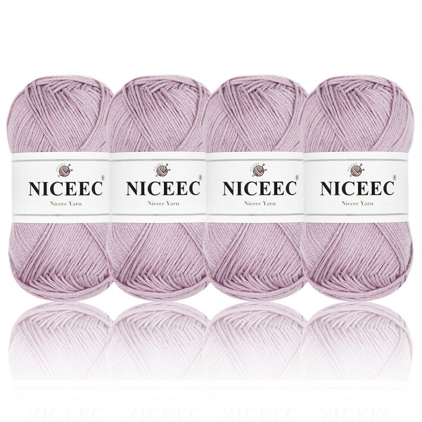 NICEEC 4 Skeins Soft Baby Yarn 100% Cotton Yarn for Crochet Knitting 4 Ply Yarn Blanket Yarn for DIY Craft Fingering Weight Yarn Total Length 4×175yds/4×50g-78#Purplish Grey