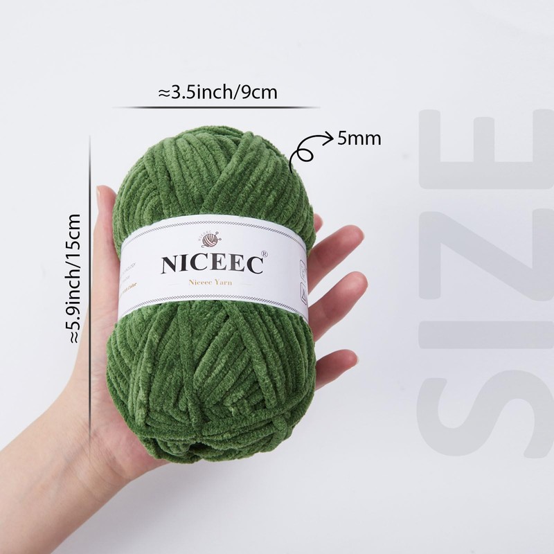NICEEC Chenille Yarn Blanket Yarn Light Worsted Weight Yarn for Knitting Fancy Yarn for Crochet Weaving DIY Craft Total Length 200m (218yds, 100g)_Army Green