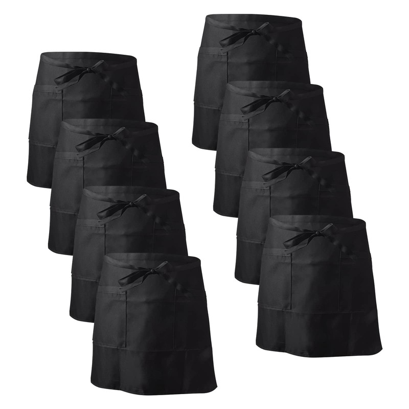 NiceLand Black Waist Apron 8 Pieces Front Tie Apron with 2 Pockets Waiter's Apron Cooking Apron Bistro Apron Baking Apron for Restaurant, Bar, black