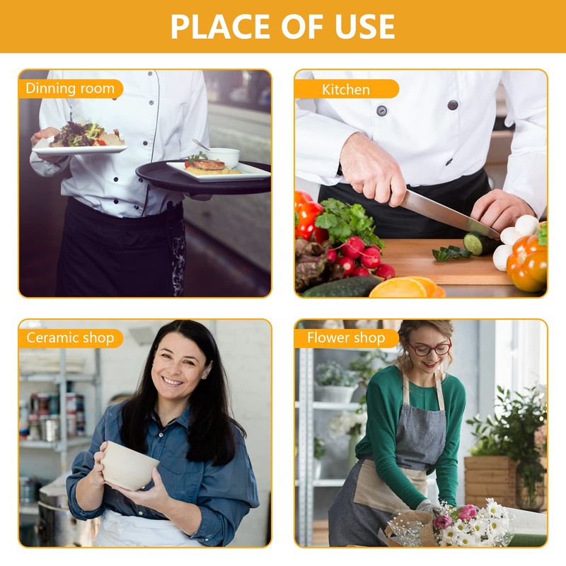 - Perfect for wearing in kitchens, cafes, studios, hotels and more. Wearing an apron is a great way to protect your clothes from getting dirty without affecting your normal work.