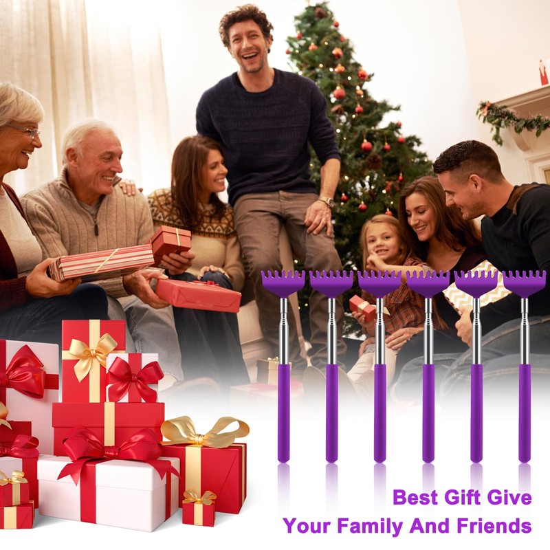 NICEMOVIC 6 Pack Back Scratcher for Women Men, Christmas Stocking Stuffers, Prizes for Adults, White Elephant Gifts for Adults, Extendable Bulk Back Massager Tool for Thanksgiving Birthday (Purple)