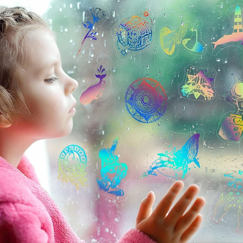 - Eye-Catching Holographic Glow: This magic world stickers set is crafted with a holographic surface that reflects rainbow hues under direct light. This shimmering effect gives your crafts a unique and magical finish. It will make your creations stand out