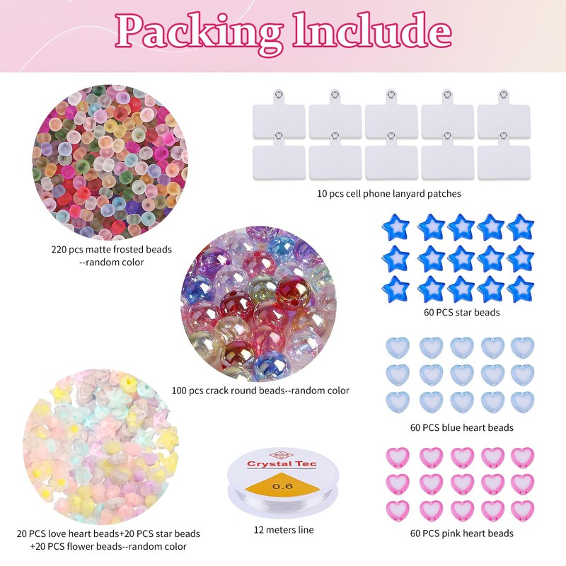 - QUANTITY: You will get 491pcs mobile phone chain bead making beads and accessories, which include love heart shape, pentagram shape and flower shape beads in sufficient quantity and various styles