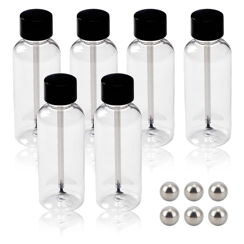 NICENEEDED 6 Stück 51 ml Nagellackflaschen mit Pinselkappe und Kugeln, Leere, durchsichtige, nachfüllbare Nagelhautölflaschen aus Kunststoff, Reisebehälter für Nail Art